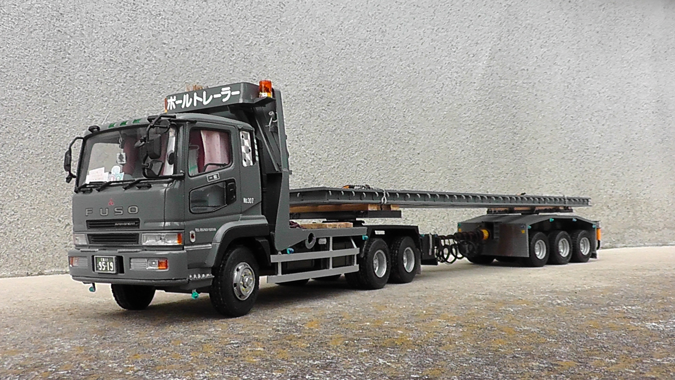 三菱ふそう+井上自動車 柘運送ポールトレーラー Posted by ishii データ 三菱ふそう+井上自動車 柘運送ポールトレーラー (キャブ以外はトラクタ、トレーラー供にスクラッチ) スケール アオシマ 1/32 9,264 views